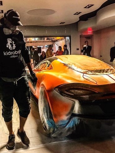 Rich B. Caliente is an accomplished artist whose journey bridges the worlds of automotive design and fine art. Raised in London, he migrated to the United States in his adolescence, bringing with him a global perspective and a relentless creative drive. His career began in the custom automotive design industry, where his eye for detail and innovation quickly set him apart using Ferrari, Porsche, Lamborghini, Rolls Royce brands as his canvas. In 2014, he became the first automotive designer to be signed by Kidrobot, marking his official entry into the world of collectible art. This breakthrough led to collaborations with iconic brands such as McLaren, Pininfarina, Nike, LVMH, and the NBA.